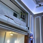 Installation of acoustic ceilings, decorative finishes, and feature lighting.